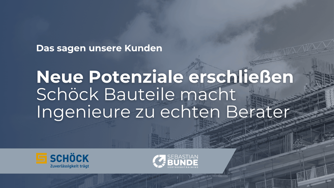 Für Andreas Schmidt ist die Zusammenarbeit mit Sebastian Bunde das bisher beste Vertriebstraining, da es genau auf die Bedürfnisse von Schöck und dem Team zugeschnitten wurde. Die Kombination aus technischer Tiefe und einer verbindlichen, hybriden Begleitung führte zu messbaren Ergebnissen im Tagesgeschäft.
